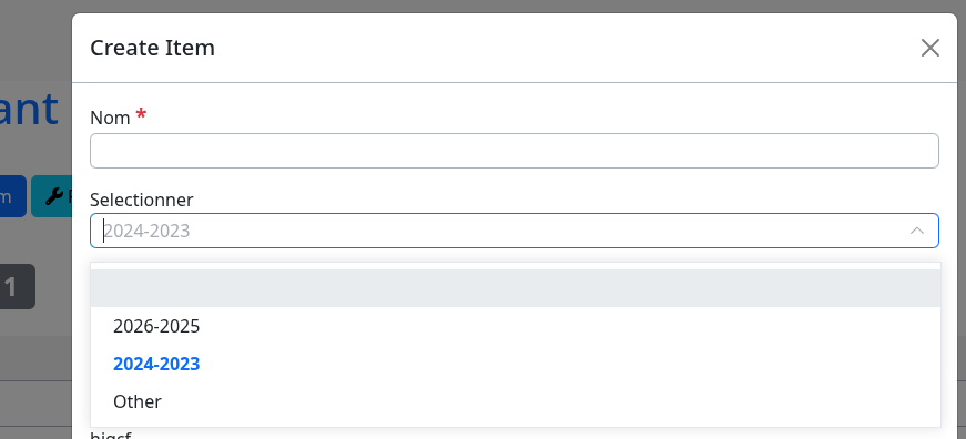 For example, in the list below, four different values are available, and the value "2024-2023" is used by default.