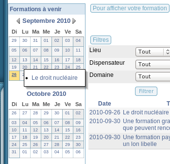 !!!Formations à venir {TRACKERLIST(trackerId=11, ignoreRequestItemId=y, fields=56:58, url="formation&itemId", showlinks=y, filterfield=56, exactvalue="greaterequal(now)", calendarfielddate=56, calendarviewmode=month, calendarstickypopup=y, wiki=trackerCalendrierFormation, calendarviewnavbar=n, wiki=trackerFormationCalendrier, calendarviewnavbar=partial) /} {TRACKERLIST(trackerId=11, ignoreRequestItemId=y, fields=56:58, url="formation&itemId", showlinks=y, filterfield=56, exactvalue="greaterequal(now)", calendarfielddate=56, calendarviewmode=month, calendarstickypopup=y, wiki=trackerCalendrierFormation, calendarviewnavbar=n, calendardelta=month, wiki=trackerFormationCalendrier) /}
